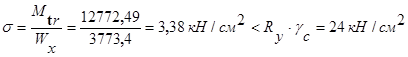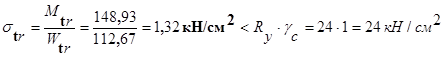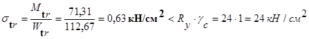 Проверяем прочность сечения траверсы по нормальным напряжениям от действия первой комбинации усилий.