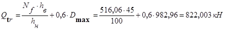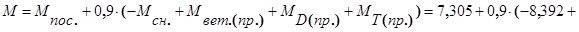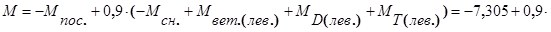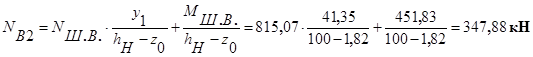 Расчетная комбинация усилий для шатровой ветви в сечении 1-1: