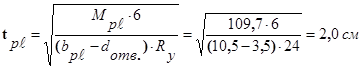 Принимаем лист толщиной 16 мм (2 мм – припуск на фрезеровку).