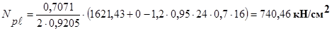 Расчет нижнего опорного узла фермы с восходящим опорным раскосом состоит из проверки прочности сварных швов, соединяющих элементы узла, и назначения размеров опорного фланца из условия работы его торца на смятие.
