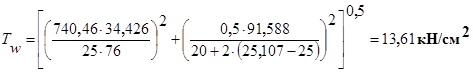 Проверяем шов Ш2, прикрепляющий элементы опорного узла к фланцу.
