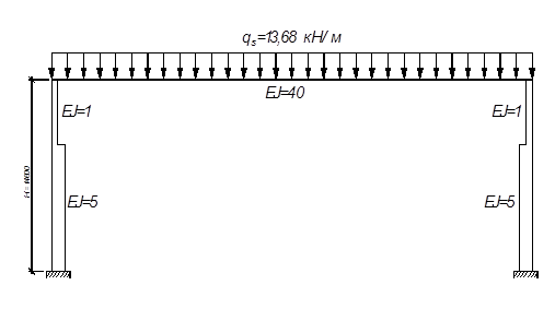 Ветровая нагрузка, действующая на участке от низа ригеля до наиболее высокой точки здания, заменяется сосредоточенной силой, приложенной в уровне низа ригеля рамы.