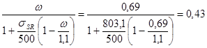ω=0,85-0,008·Rb=0,85-0,008·22·0,9=0,69