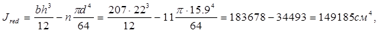 hred=h-(n*p*d2)/4b=22-(11*p*15.92)/(4*207)=11.5см>10 см.