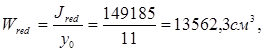 расстояние от нижней грани до центра тяжести приведённого сечения: