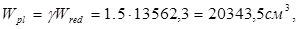 Упругопластический момент по растянутой зоне в стадии изготовления и обжатия Wpl’=Wpl=20343см3.