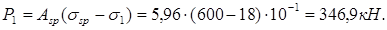 Р1=Аsp(ssp-slos1)=5,96*(600-18,79)*10-1=346,4МПа.