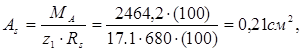 Этот момент воспринимается продольной монтажной арматурой каркасов. Полагая, что z1=0.9*h0=0.9*19=17.1см, требуемая площадь сечения указанной арматуры составляет: