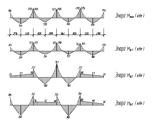 Рисунок 5.3. Эпюры моментов и равномерно распределенных нагрузок