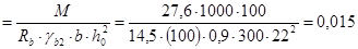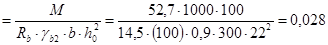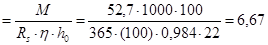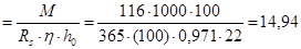 По табл.3.1. [ 2] η=0,971; ξ=0,067, условие ξ<ξR – соблюдается т.к. 0,061<0,604