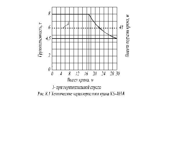 Принимаем башенный кран КБ-403 А со стрелой длиной 30м и грузоподъемностью