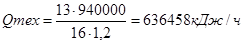 Qобщ = (0,12+0,64+0,4) • 1,2 • 1,5 = 2,088 гДж/ч