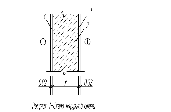 Определимся с конструкциями и рассчитаем толщины утеплителей наружных ограждений по принятым сопротивлениям теплопередачи. Схема конструкции стены приведена на рисунке 1.