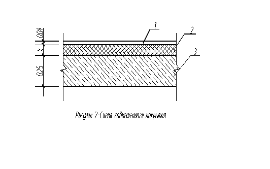 Для обеспечения требуемого по градусосуткам сопротивления теплопередаче совмещенного покрытия R0тр = 3,6 м2×0С/Вт определяем толщину утеплителя в многослойной конструкции покрытия (термическое сопротивление пароизоляции отнесены в запас), схема которого приведена на рисунке 2