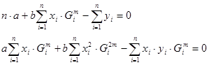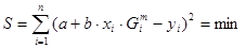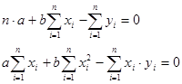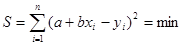 Дифференцируя функцию S по искомым параметрам a и b и приравнивая полученные выражения к нулю, получаем систему следующего вида: