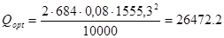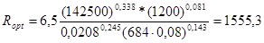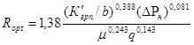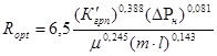 При известном значении радиуса Ropt оптимальную нагрузку ГРП находим по формуле