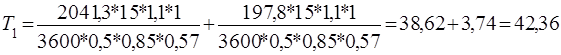 - коэффициент учитывающий изменения продолжительности цикла в зависимости от категории грунта =1 (супесь)