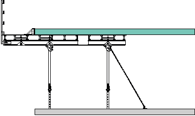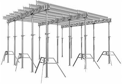 При устройстве перекрытий большего пролёта используются промежуточные опоры из телескопических стоек, оснащённых механическими домкратными системами, устанавливаемые с шагом не более 2,8 м. На балки, устанавливаемые с заданным шагом, укладываются щиты опалубки, которые фиксируются к верхним поясам ригелей с помощью зажимов, и с помощью клиновых зажимов – между собой.