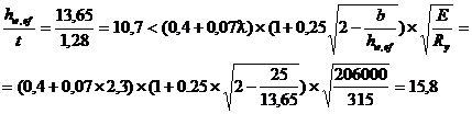 где hw,ef = h – t – R= 16,93 – 1,28 – 2,0 = 13,65