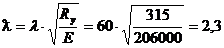 Принимаем профиль 20ШТ1, А = 62 см2, ix =5,13 см, iy= 7,19 см.