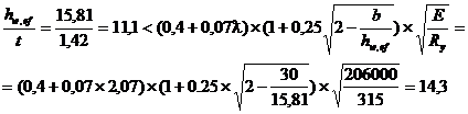 где hw,ef = h – t – R= 194,3 - 14,2 - 22 = 158,1мм = 15,81 см