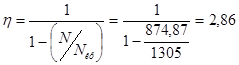 jl = 1 + β·М1ld/М1 = 1 + 1·3884,04/5249,22 = 1,74;
