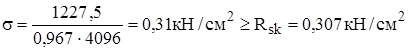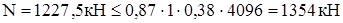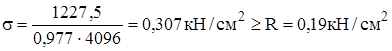 Расчетное сопротивление сжатию кладки из глиняного кирпича марки 125 на растворе марки 75: R = 0,19 кН/см2