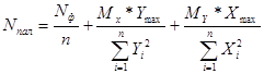 Nф, Мх,Мy,- соответствующее расчетное сжимающее усилие, расчету сгибающий момент относительно главных центральных осей Х і Y плана свай в подошве ростверка Хi и Yi - расстояние от главных осей к оси любой сваи Хмах и Умах расстояние от главных осей к оси каждой сваи, для которой вычисляется нагрузка