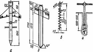 Рис. 3 - Конструкции переносных заземлителей: а - стержневой; б - из угловой стали; в - спиральный; г – бурав