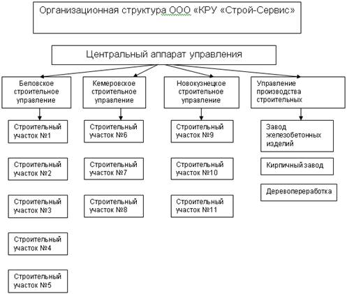 Производственная структура ООО «КРУ «Строй-Сервис», представленная на рисунке 2.1, построена по территориальному признаку.