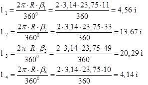 - длины поверхности скольжения в пределах участка, соответственно грунтов №1, №2 и №3;