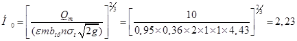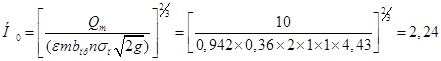 - угол наклона к горизонту лотка быстротока (при уклонах менее 0,15 углом наклона к горизонту лотка быстротока можно пренебречь и принять