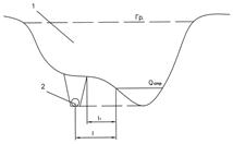 2 – труба, уложенная в траншею, на отметке дна реки;