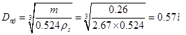 Для определения диаметра камня, уложенного в крепление, нахожу массу отдельных камней m из условия устойчивости к размывающему действию волн по формуле:
