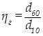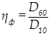 D60- размер фракций тела дренажа, масса которых вместе с массой более мелких фракций составляет 60% массы всего грунта;