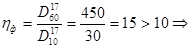 Проверяем контакт 14 грунта с телом дренажа по второму графику Истоминой [3], рис. 3.13б, стр. 134. Для этого вычисляем значения коэффициента неоднородности карьерного грунта