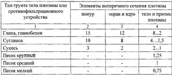 определяется в зависимости от типа грунта по таблице 6 (для однородных плотин принимается по колонке 4):