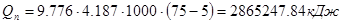 где r - плотность воды, (1000 кг/м3); с - теплоемкость, (4,187 кДж/кг°С);