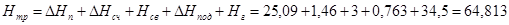 где DHп - потери напора в подающих трубопроводах системы горячего водоснабжения (25,09 м); DHсч - потери напора в водомере, м; Hсв - располагаемый свободный напор у смесителя ванны (3м); DHпод — потери в водоподогревателе, м; Нг— геометрическая высота подъема воды от оси трубопровода на вводе до оси наиболее высоко расположенного водоразборного прибора (34,5 м).