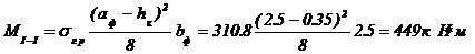 Площадь сечения рабочей арматуры определяется из расчета на изгиб консольных выступов фундамента в сечениях I-I (у грани колонны)