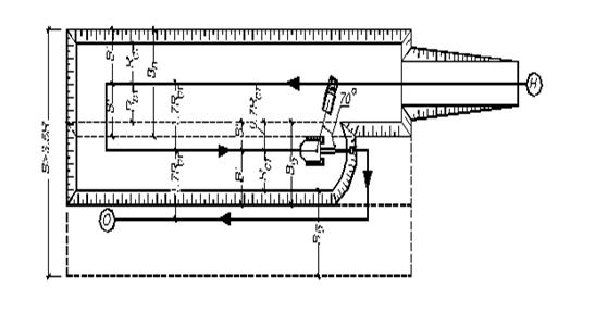 После определения типа проходок и их размеров проектируется технологическая схема экскаваторных работ. Для этого на плане котлована показывается положение осей движения экскаватора и транспортных средств, производится расстановка машин в забое и отыскивается средний угол поворота экскаватора.