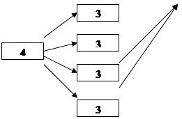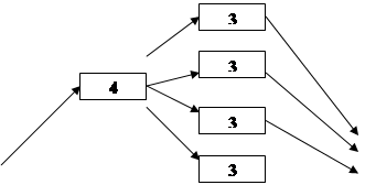 Рис. 6. Схема взаимодействия машин в комплекте: 1 - бульдозер ДЗ - 18; 2 - рыхлитель ДП - 14; 3 - скреперы ДЗ -20В; 4 - трактора-толкачи Т - 130; 5 - каток ДУ – 31А; 6 - бульдозер ДЗ - 18