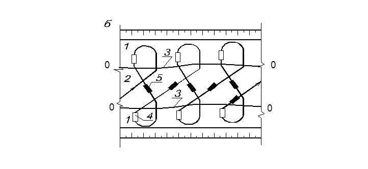 Рис. 8. Схемы расположения проходок скрепера: а - последовательная