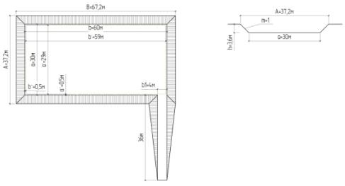 Размеры котлована по верху: А=а+2mh=30+2∙1∙3.6=37.2м