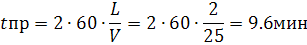 Где L=2 км – дальность перемещения грунта;V=25 км/час – расчетная скорость движения; 60 – число минут в часе.