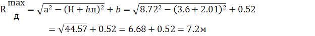 Наибольший радиус выгрузки в транспорт Rв, м |