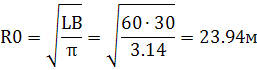 Котлован по форме близок к квадрату (отношение длины к ширине 60/30=2), поэтому приведенный радиус котлована находится по формуле