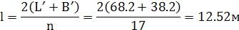 где Lʹ=67.2+2∙0.5=68.2м, Вʹ=37.2+2∙0.5=38.2м – длина и ширина контура расположения иглофильтров с учетом их расположения на расстоянии 0,5 м от бровки откоса.