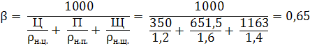 1. Сумма абсолютных объемов составляющих бетонной смеси равна 1 м3 или 1000 литров.