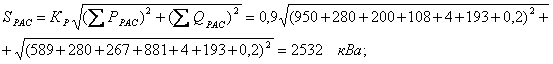Расчетный ток нагрузки для определения сечения проводов питающих подстанцию.
